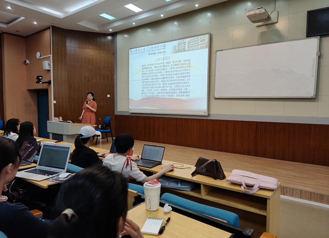 6月27—28日,由广西师范大学外国语学院承办,桂林学院和桂林理工大学协办的“外语教师科研学术研究工作坊”在广西师范大学育才校区举行。工作坊邀请了中国英汉语比较研究会二语习得研究专业委员会副会长、博士生导师、国务院政府特殊津贴专家、国家社会科学基金项目及教育部人文社会科学基金项目通讯评审专家徐锦芬教授作为主讲嘉宾,分四个专题就学术论文的选题、研究设计、撰写与投稿等方面进行了深入讲解。人文学院以自治区级虚拟教研室建设试点“基于新文科建设的国际语言人才协同培养虚拟教研室”为研究平台,组织30余名教师参加此次工作坊。