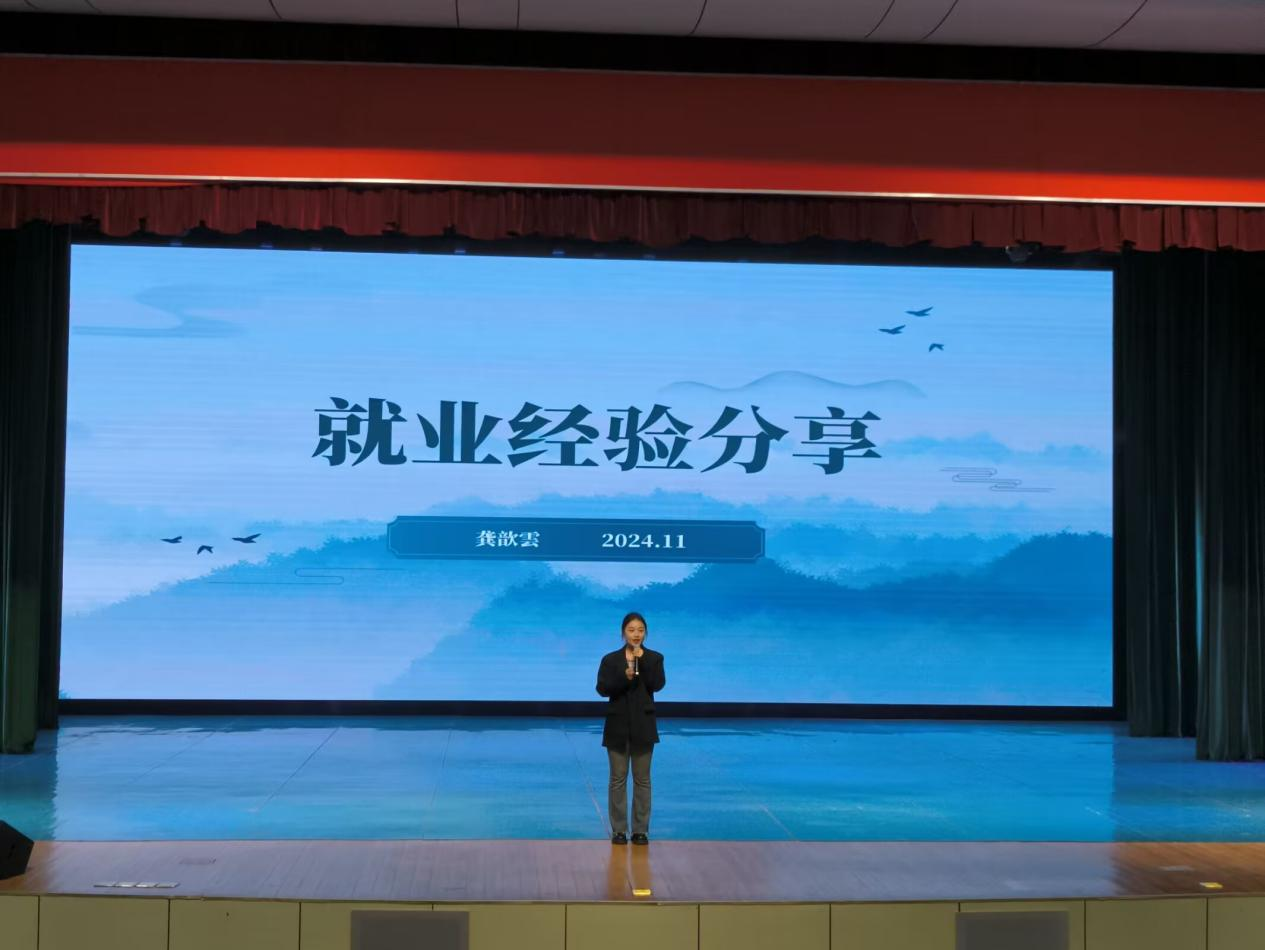 大会安排已经成功就业的2021级英语专业学生龚歆雲作经验分享,她以自己的求职经历为例,围绕简历制作、面试技巧、心态调整等方面进行分享,为在场学生提供了实用的建议。