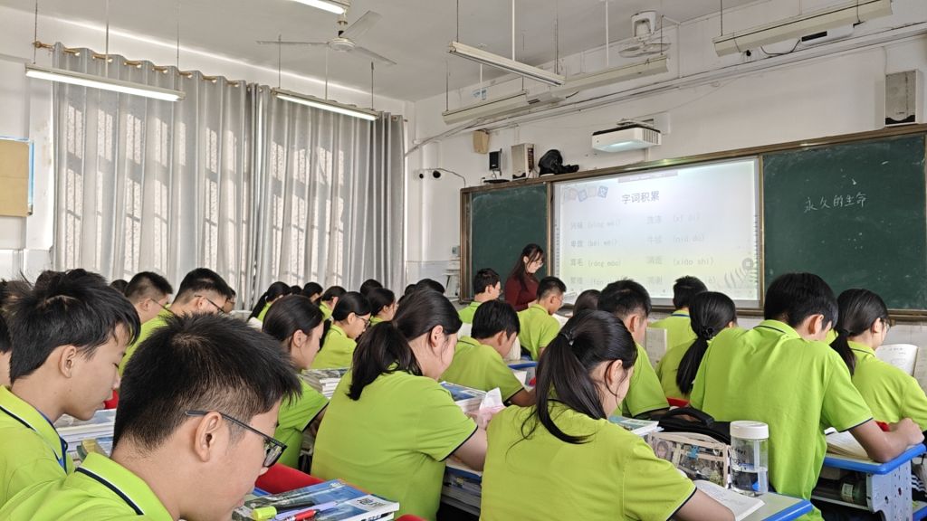汇报课环节中,人文学院实习生何馨雨、李水丽分别代表语文、英语科组进行授课。授课过程中,两位实习生教学思路清晰,语言流畅,课堂气氛活跃,学生反响热烈。其中,何馨雨同学以哲理性散文《永久的生命》为教学内容,她通过生动的讲解和细腻的文本分析,引导学生深入理解生命的价值与意义。李水丽同学则以其流利的英语口语、丰富的肢体语言以及有趣的互动设计,为学生们带来了一堂别开生面的英语课。两位实习生的汇报课充分展示了她们在实习期间所积累的教学经验和专业素养,也体现了贵港市荷城初级中学对我院实习生培养工作的肯定与支持。