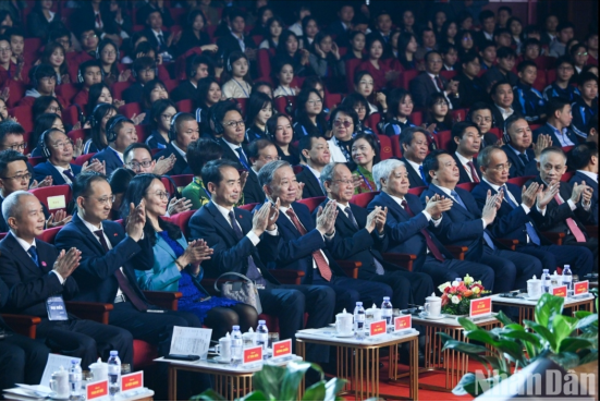 正值中越建交75周年暨“2025年中越人文交流年”之际,3月20日上午,由越南外交部主办,越南友好组织联合会、越南电视台、越南通讯社联合举办的越中各时期留学生、大学生见面会在越南首都河内的越中友谊宫举行。越共中央总书记苏林、中国驻越南大使何炜及党政领导人同800余名来自中国和越南的学生和留学生齐聚一堂,共同见证这一重要时刻。我校2022级越南语专业的全体同学作为越南河内师范大学的留学生代表参与了此次活动。