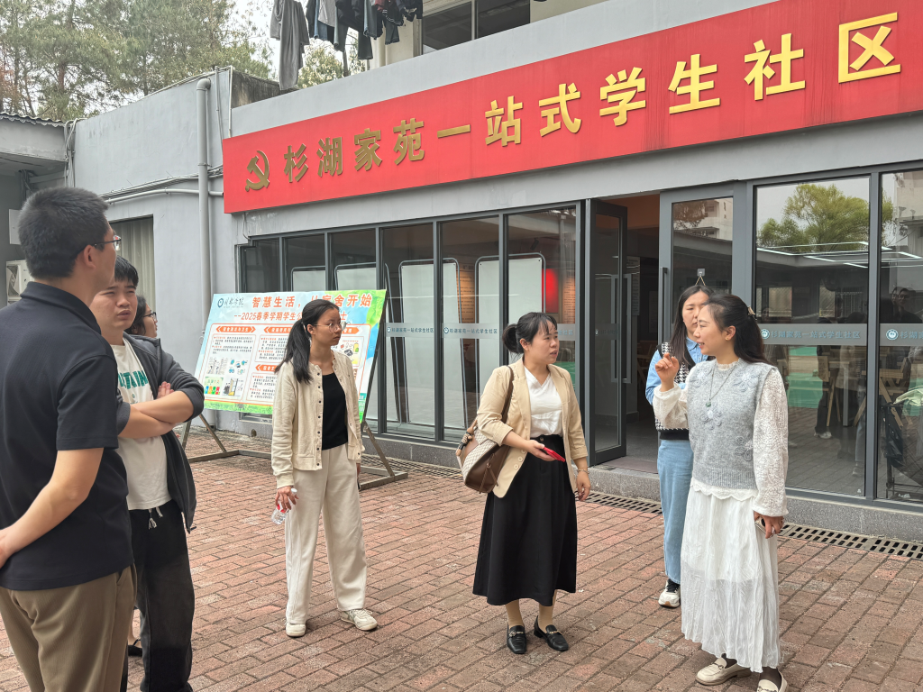 座谈会后,人文学院党总支副书记陪同考察团一行实地参观走访了人文学院心理工作站以及学校杉湖家苑一站式学生社区、大学生活动中心等场地。