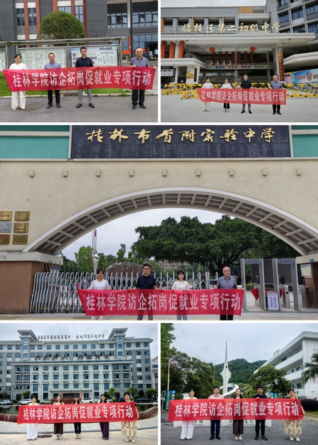 为深入贯彻落实党中央、国务院关于高校毕业生就业工作的决策部署,积极响应教育部“访企拓岗促就业”专项行动号召,全力促进2025届毕业生更充分、更高质量就业,5月30日,外国语学院党总支书记、副书记分别带队对桂林市第十九中学、桂林市第十一中学、桂林市首附实验中学、临桂区宏谋中学、临桂区第二初级中学等5所学校开展“访企拓岗促就业”专项行动,学院专业负责人等骨干教师参加。