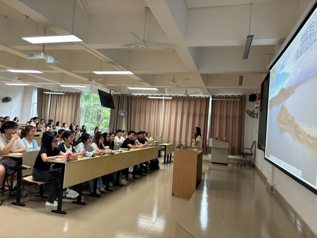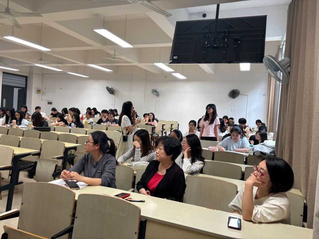 5月30日下午,外国语学院英语专业“名师进讲堂”系列活动之中学阅读示范课在至善楼1307教室举行。活动邀请了桂林市第十一中学唐桂娟以外研版新初中英语教材七年级下册《Unit 5 Understanding idea Colours of my hometown》作为教学内容执教一堂中学阅读教学课。桂林市第十一中学初中英语教学组组长闵芳及其教学团队共7人以及2022级英语专业140人参加了活动。