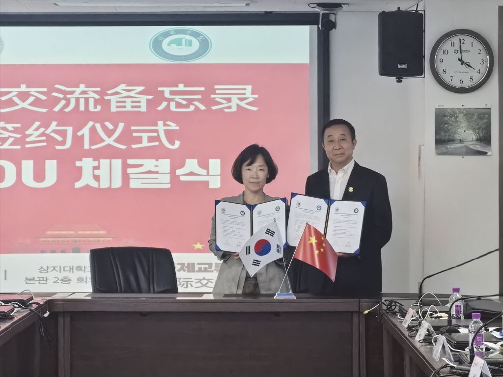 在尚志大学,代表团受到国际交流处处长郑莲实的热情欢迎,并实地考察了校园办学条件及留学生服务体系。郑处长重点介绍了该校在韩医学、艺术学等领域的办学特色及国际化成果。双方围绕硕博连读、教师进修、文化交流等方面进行了深入探讨,并签署了合作备忘录,为今后多层次、多维度的合作奠定了坚实基础。