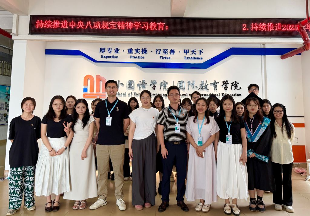 为深入学习贯彻习近平新时代中国特色社会主义思想,落实立德树人根本任务,6月18日下午,外国语学院在2108会议室隆重举行2025届毕业生党员“在校最后一次党课”暨校友班级理事座谈会。学院党总支书记讲授专题党课,30余名毕业生党员与校友班级理事齐聚一堂,共话成长担当。活动由学院党总支副书记主持。