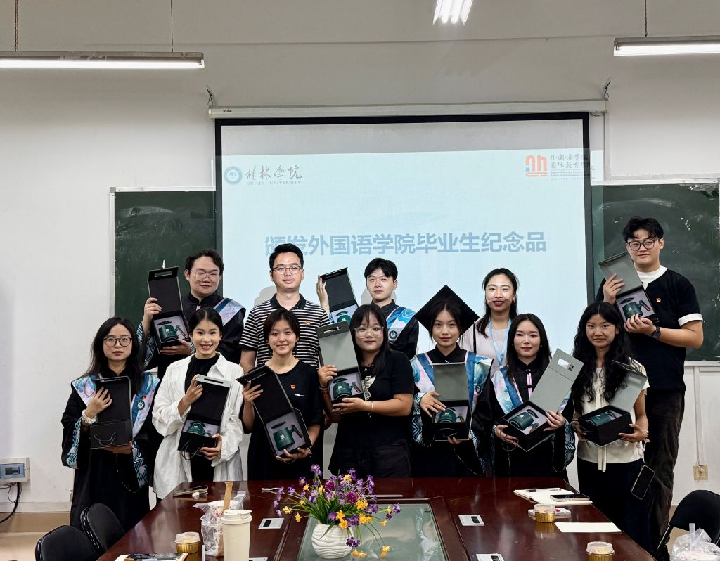 党总支书记以《溯源逐梦·乘势而上·至善立魂——在时代征程中书写青春答卷》为题,为毕业生党员讲授在校最后一堂党课。他从三个维度展开深刻阐述:一是溯源逐梦,通过梳理学校和学院发展历史脉络,号召同学们要强化爱校荣校意识,始终铭记“桂院人”身份,无论走到哪里都关心关注学校、学院的发展;二是乘势而上,结合当前国际形势与国家发展战略,分析外语专业人才在“一带一路”建设、文化传播等领域的时代机遇,引导党员锚定人生坐标;三是至善立魂,以优秀校友党员的奋斗故事为例,强调要在基层实践、岗位建功中践行初心使命,让青春在服务人民中绽放光彩。党课现场,毕业生党员们认真记录、频频点头,沉浸式地讲授让党性教育入脑入心。