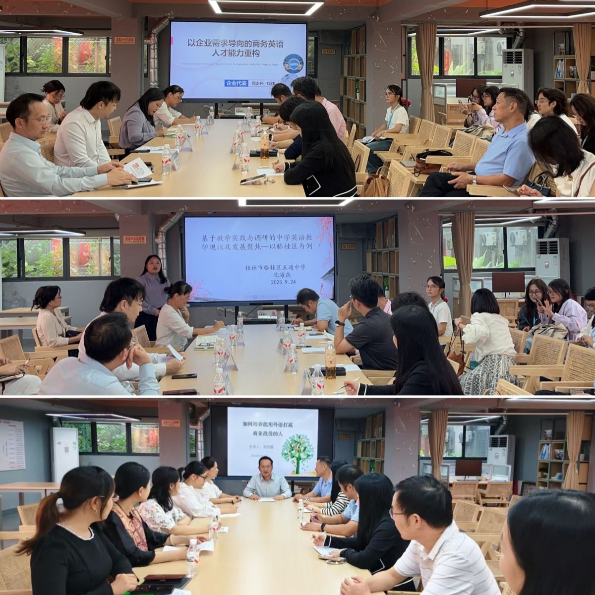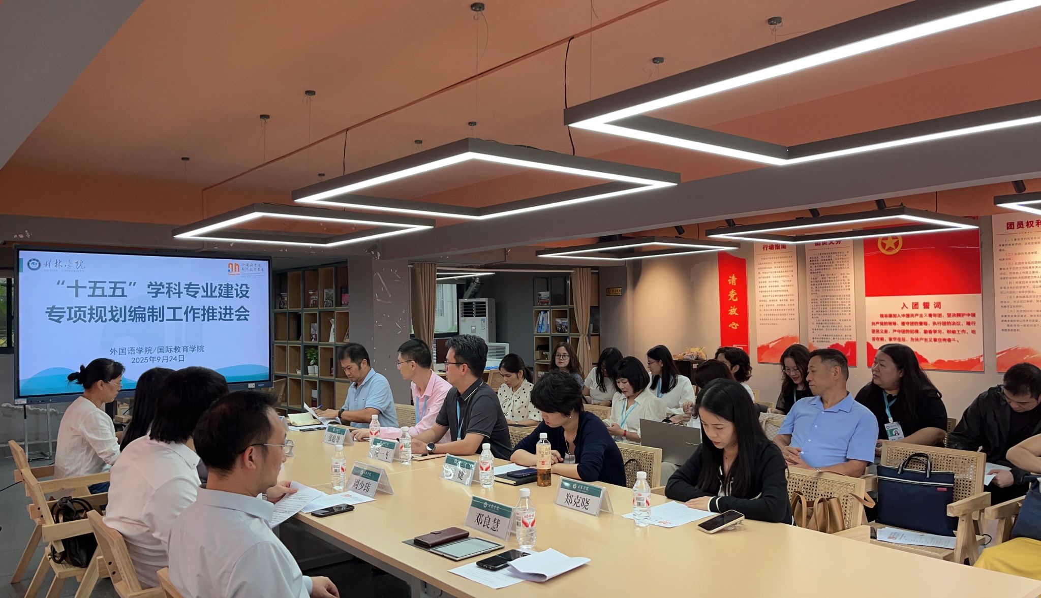 9月24日下午,外国语学院在杉湖家苑一站式学生社区党团活动中心召开“十五五”学科专业建设专项规划编制工作推进会。学院党总支书记、教学副院长,英语、商务英语、越南语、泰语专业全体教师参会;百事通国旅跨境业务部总监周少玮、临桂区五通中学高级教师兼区教育局英语教研员沈海燕、东盟科技公司董事长邓良慧等行业专家受邀到会指导,会议由学院党总支书记主持。