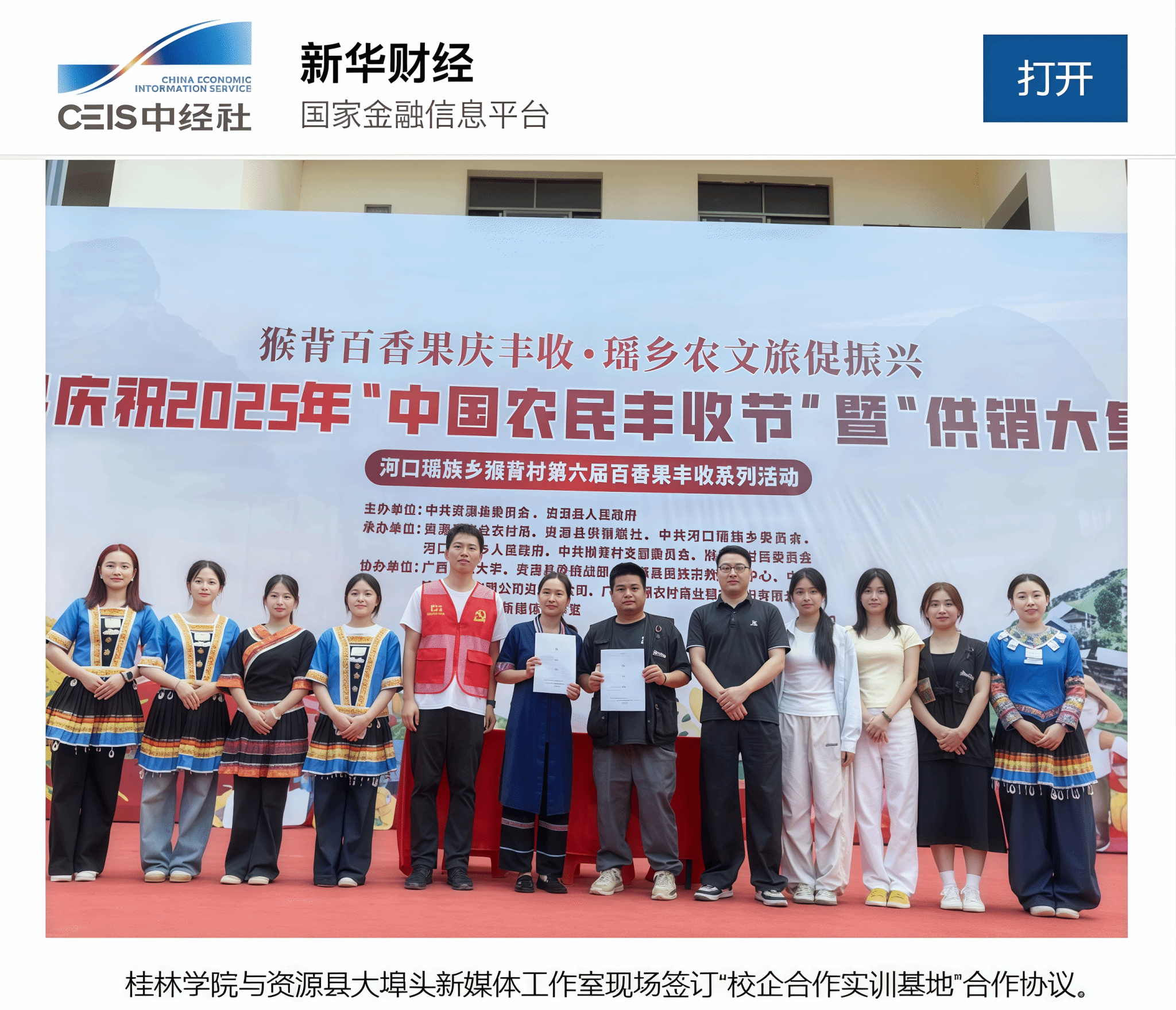 中央媒体新华财经以《广西资源:粤桂协作促产销 供销大集助农添力》为题专题报道了该活动,并重点提及外国语学院商务英语专业学生以专业所长赋能农文旅直播带货的实践成果。