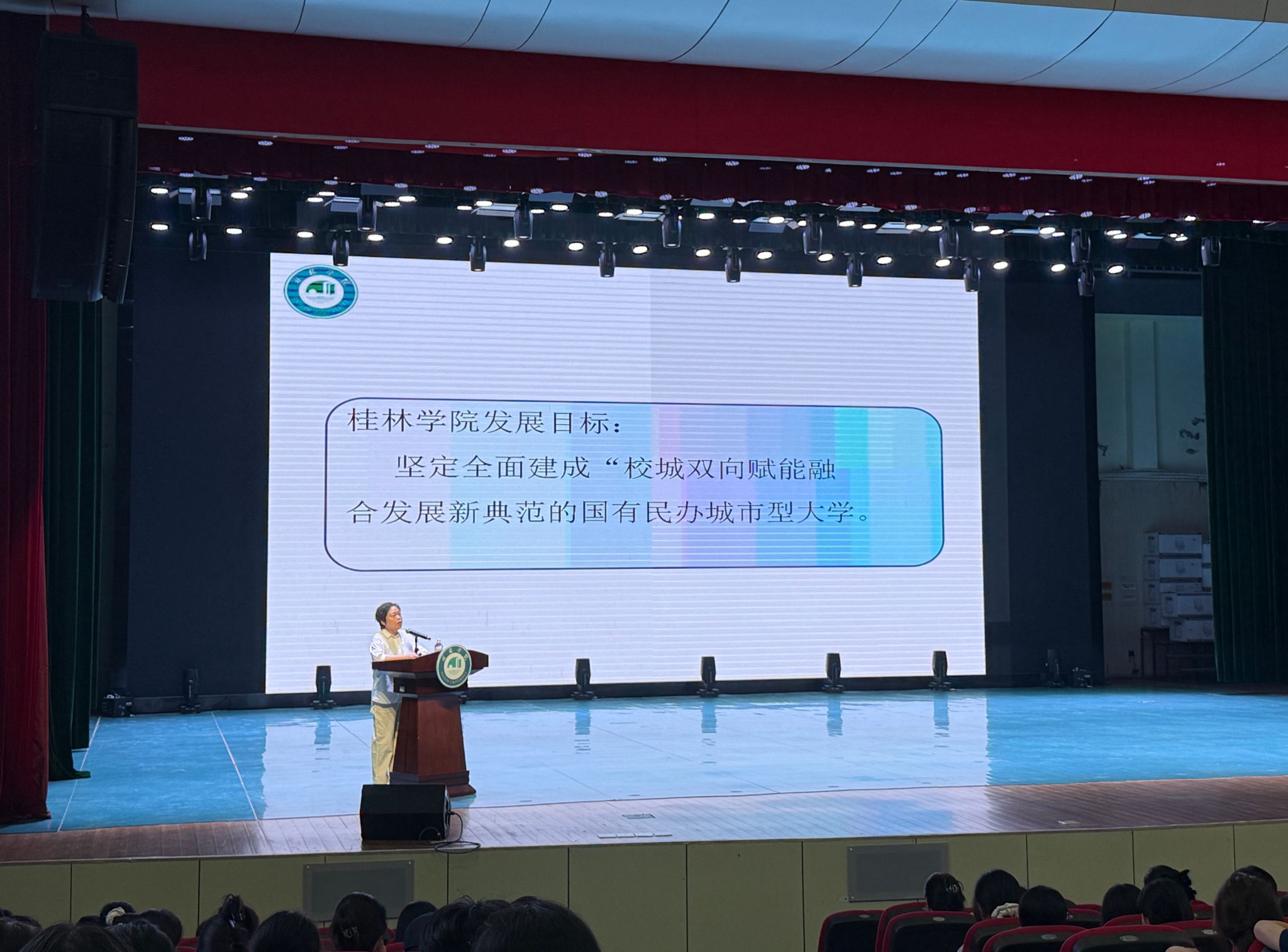 讲座尾声,何玲对新生提出三点殷切希望:一是希望同学们以新起点拓宽视野,以新希望锚定梦想,在探索中明确成长方向;二是希望大家珍惜在桂林学院的求学时光,学有所成、不负韶华,让大学生活更具价值;三是希望同学们努力成长为博学多才、视野开阔、勇于创新、敢于拼搏的“未来人”与“世界人”,在时代浪潮中展现外语学子的担当。