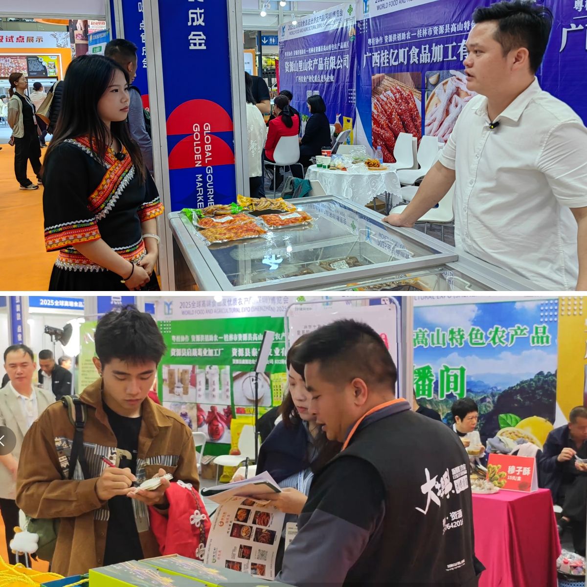 10月21日至24日,外国语学院商务英语专业师生赴深圳会展中心,参加“2025全球高端食品及优质农产品(深圳)博览会”,围绕“跨境电商赋能乡村振兴”主题,开展了为期四天的专业见习。本次活动由资源县供销合作社联合“粤桂供销助农直播间”共同组织实施,以外语直播实战与国际展会调研双轨并行,推动学生在真实商务场景中学以致用,积极服务农业农村发展。