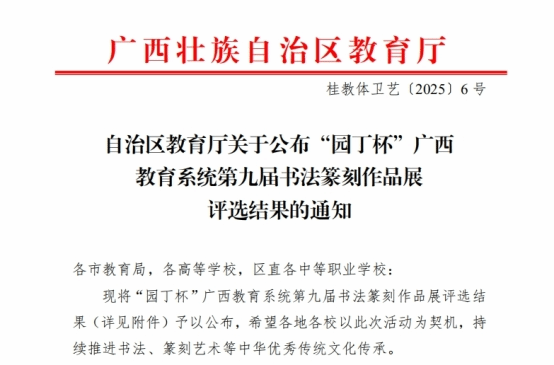 喜讯:我院学生作品入选“园丁杯”广西教育系统第九届书法篆刻作品展