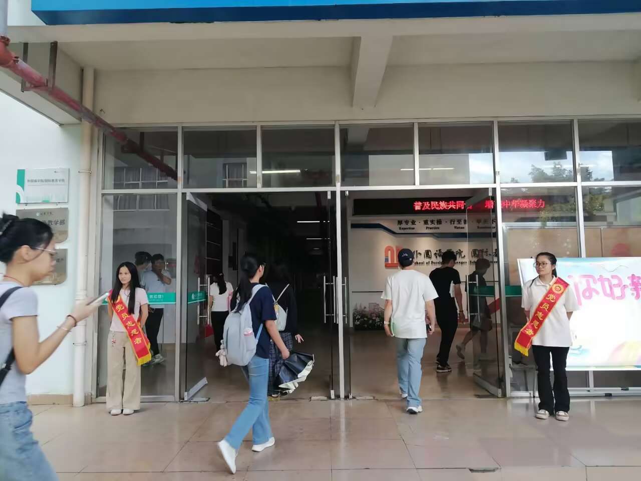 据悉,此次文明修身活动是外国语学院学风建设活动的重要组成部分,旨在通过 “以身作则、示范引领” 的方式,强化学生的自我管理与集体意识。活动前期,学院精心选拔了一批思想觉悟高、责任心强的学生骨干,涵盖各年级、各专业,并通过专题培训明确站岗职责与服务规范 —— 引导师生有序通行、主动提醒不文明行为、为师生提供咨询引导、维护学院门口环境卫生等。