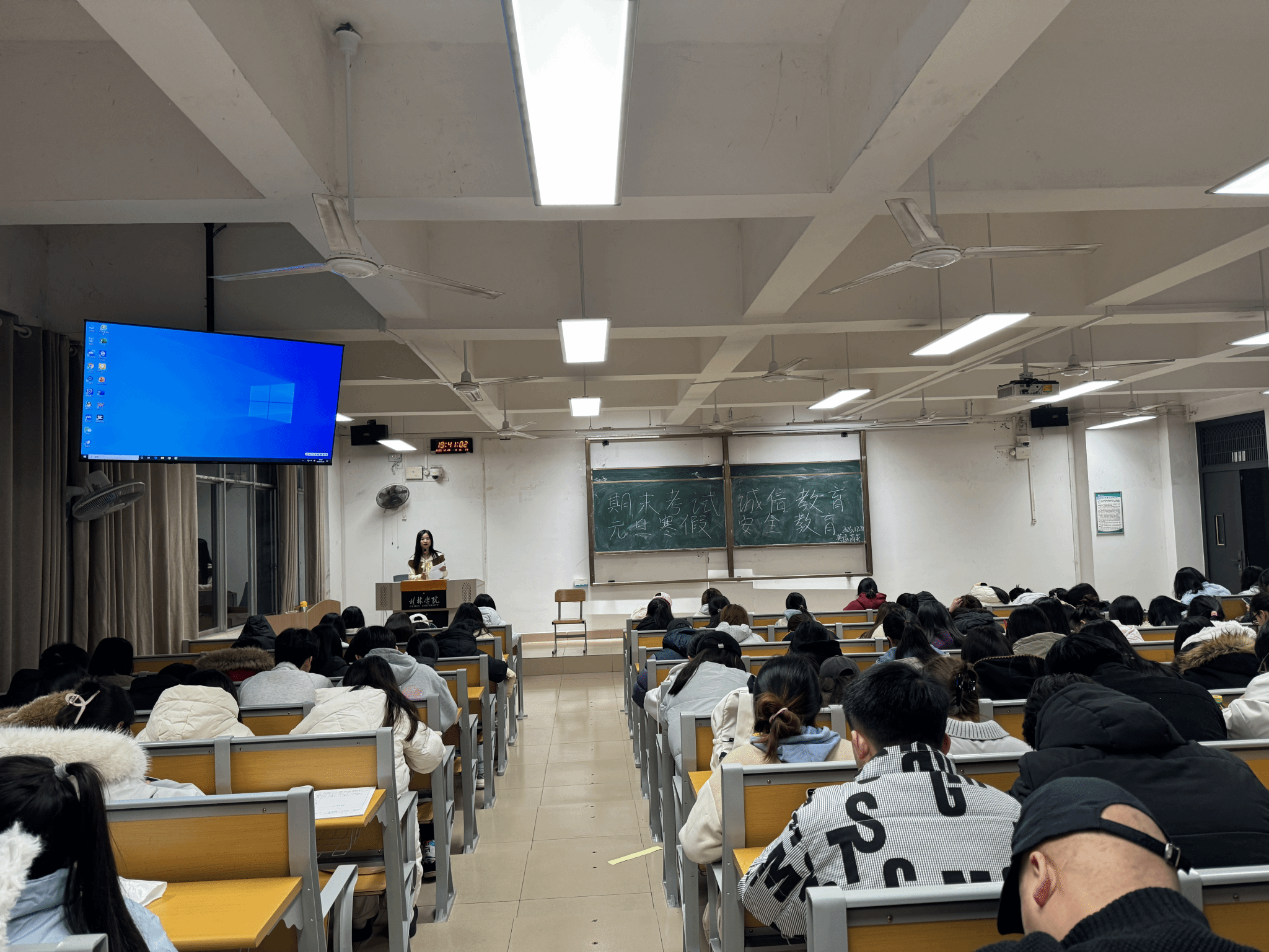 随后,结合元旦假期及寒假临近的实际情况,辅导员开展了全方位的安全教育。在交通安全方面,提醒学生严格遵守交通规则,谨慎选择出行方式,注意往返途中的个人防护;在消防安全与用电安全上,强调离校前要仔细检查宿舍电源、火源,杜绝安全隐患;在人身与财产安全领域,告诫学生提高防范意识,远离危险场所,妥善保管个人财物,谨防诈骗、盗窃等事件发生,谨防一氧化碳中毒;同时,辅导员还叮嘱学生合理规划假期时间,兼顾休息与学习,保持良好的生活作息,度过一个安全、充实、有意义的假期。