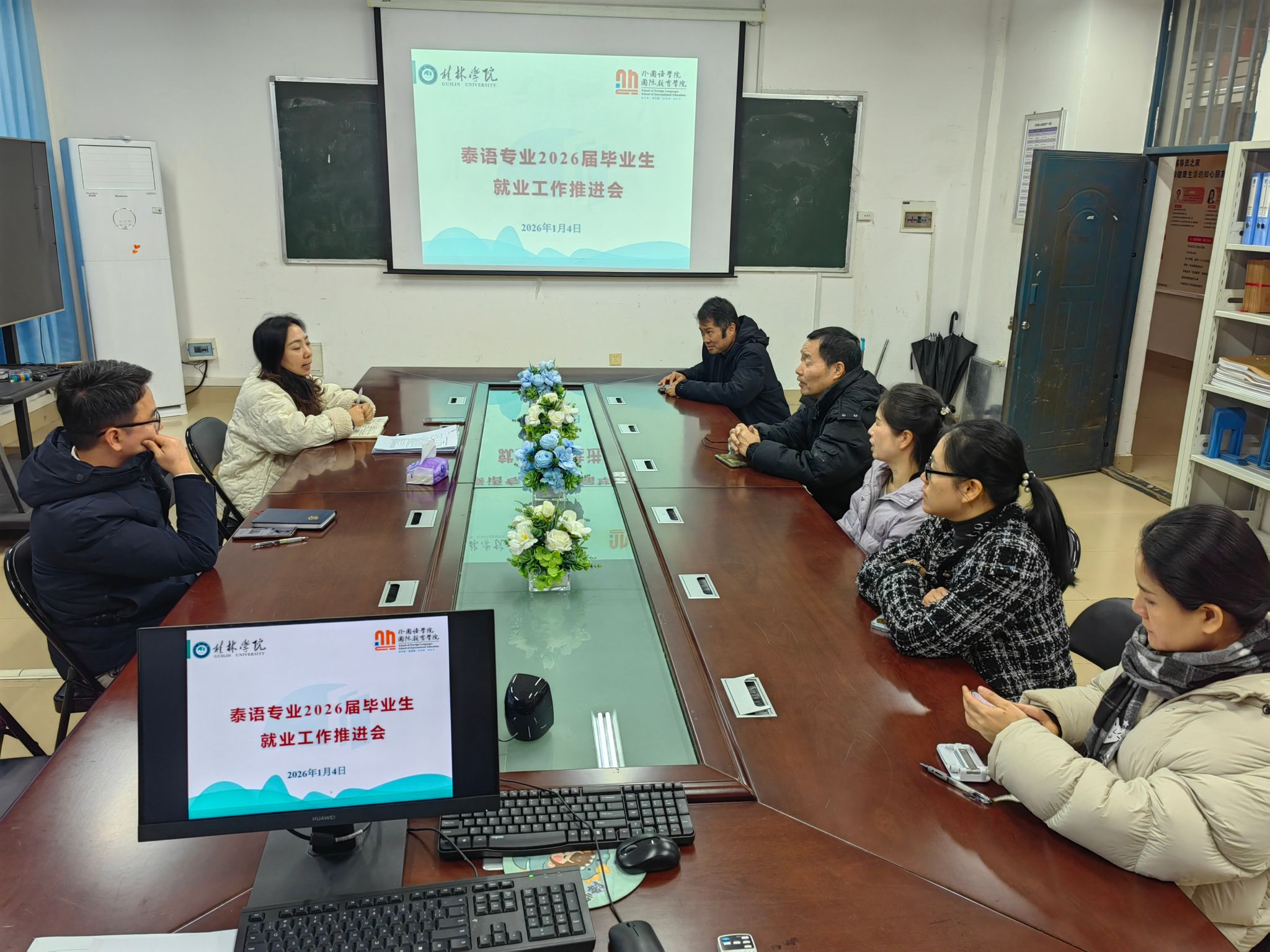 为积极应对当前复杂就业形势,扎实推进2026届毕业生就业指导与服务工作,助力学生实现更充分、更高质量就业,1月4日,外国语学院在2108会议室召开2026届泰语专业毕业生就业工作推进会。会议由学院党总支书记主持,党总支副书记、毕业班辅导员及泰语专业全体教师参会。