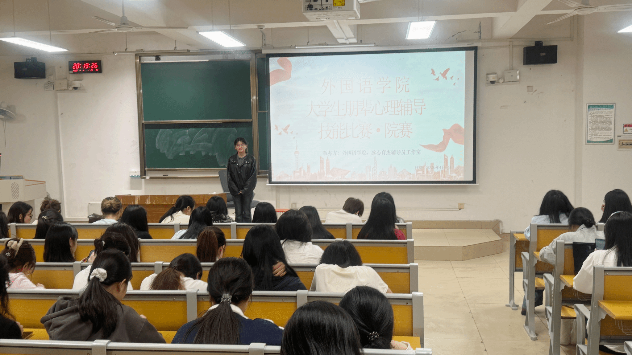 为深入落实学校心理健康教育工作部署,积极响应学校2026年大学生朋辈心理辅导技能比赛号召,切实提升学生朋辈心理互助能力,筑牢学院心理育人根基,4月7日下午,外国语学院携手冰心育杰辅导员工作室,成功举办朋辈心理辅导技能院级选拔赛,为校级比赛选拔优质参赛队伍。