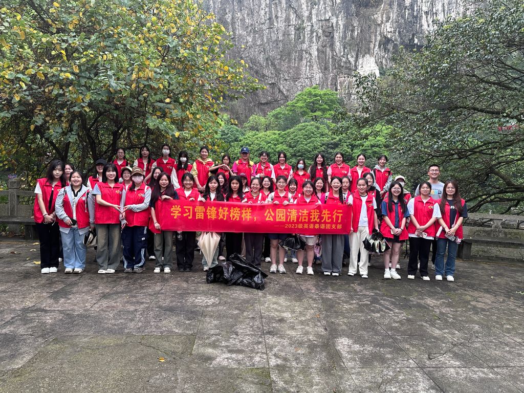 为践行雷锋精神和“奉献、友爱、互助、进步”的志愿服务精神,3月30日,人文学院2023级英语泰语团支部前往桂林市南溪山公园开展以“学习雷锋好榜样,公园清洁我先行”为主题的志愿活动。