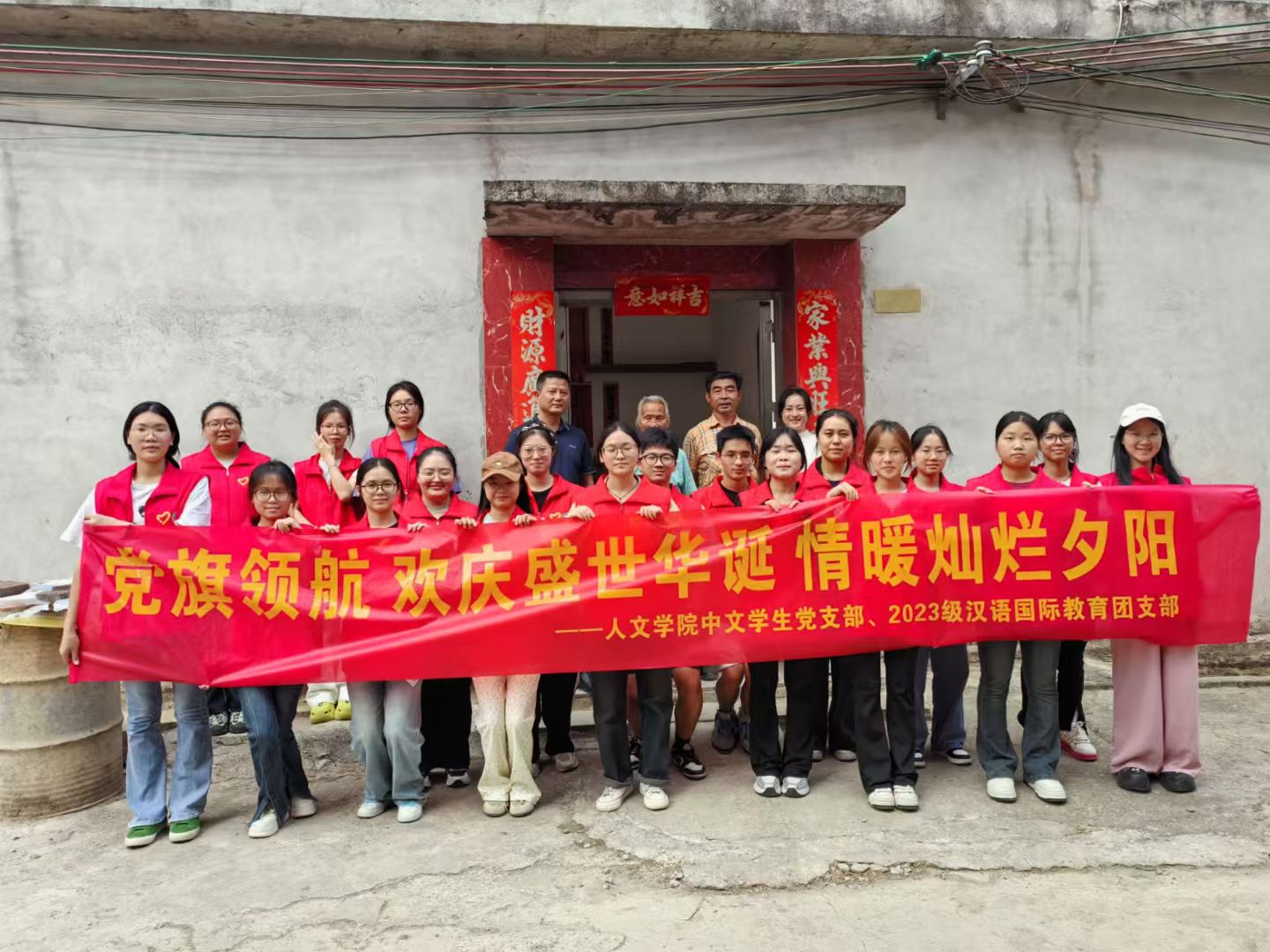 金秋时节,丹桂飘香,在欢庆中华人民共和国成立75周年华诞之际,为弘扬中华民族尊老、敬老、爱老的优秀传统美德,10月11日,人文学院中文学生党支部前往雁山区陶家村开展以“党旗领航 欢庆盛世华诞 情暖灿烂夕阳”为主题的重阳节党日活动。