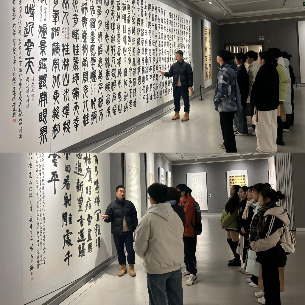 活动当天,同学们首先参观了“饮之太和——唐长兴及其研究生书法篆刻展”。展览中,一幅幅精美的书法作品和篆刻作品令人叹为观止,大家纷纷驻足欣赏,仔细品味作品中的艺术韵味。唐长兴及其研究生的精湛技艺和深厚功底,给同学们留下了深刻的印象。