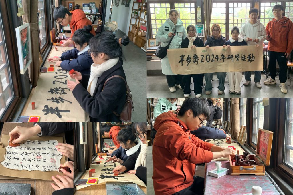 半步斋书画社的同学们在体验非遗——篆刻钤印