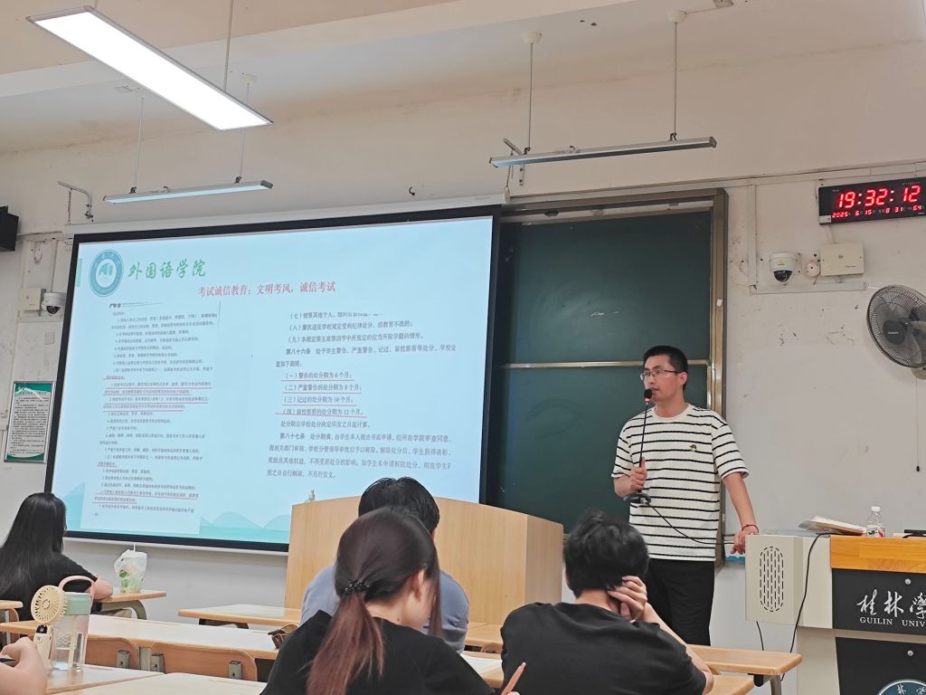 随着期末考试临近,为强化学生诚信意识,营造公平公正的考试环境,外国语学院利用周日晚例会开展期末诚信考试教育,以诚信护航学子成长,以规范考风促进学风建设。