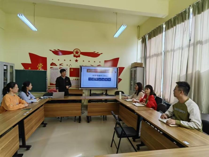 为培养和造就社会主义事业接班人、加强党员队伍建设、筑牢红色战斗堡垒,传承习近平法治精神,2022年10月19日,语言文学学院第二学生党支部采用线下加线上的方式开展“全面准确学习领会习近平法治思想”主题党课,主讲人是语言文学学院党总支书记江仿。
