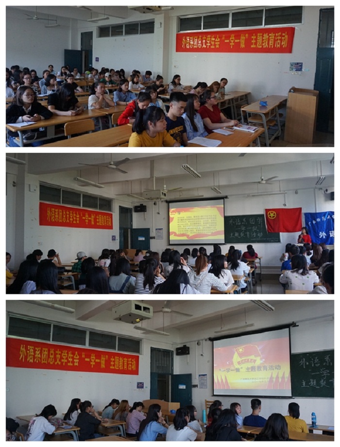5 月4日青年节当天,外语系团学在1209教室组织开展“一学一做”会议,会议围绕总书记视察广西时的重要讲话精神,主要通过讲解PPT和播放视频引导着团员们走近“一学一做”,明确学生干部的重任。通过认真学习习近平总书记视察广西的重要讲话精神和治国理政新理念新思想新战略的重要举措,学生们在思想上、政治上、行动上形成了向以习近平同志为核心的党中央看齐,做合格共青团员的意识。