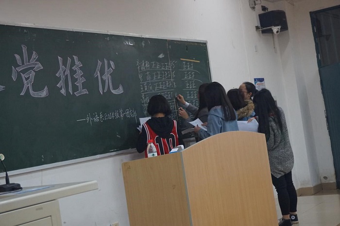 为进一步加强党组织、团组织建设,提高团组织的凝聚力和战斗力,发挥共青团作为党的助手和后备军的作用,我支部于2016年3月27日在1217教室召开了本支部民主入党推优大会。2014级辅导员周俊巧老师,学生党员代表和团学组织部考评干部代表作为嘉宾应邀出席本次大会,支部成员