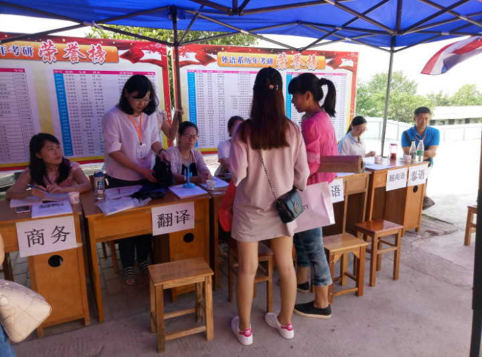 作为首届大类招生培养的学生,今后的专业选择与就业方向成为了很多家庭关心的热点问题。为了让家长方便快捷的对我系专业有所了解,考虑到新生报到,家长随行的比较多,外语系在此次迎新工作中于东四寝室门口特意设置了新生专业咨询点,为外语系新生提供关于专业的意向性指导。我系领导班子、各教研室专任教师主要承担咨询解答的工作。老师们与新生和家长亲切交流,耐心回答解决了新生关于英语专业大类专业选择遇到的问题。酷热的天气并没有阻止老师们和志愿者的热情,反而更加用心的投入到服务新生的工作中。辛勤的付出也获得了新生及家长的赞赏。很多家长都表示,心中的疑惑解开了,把孩子留在外语系学习就放心了。我们也相信,2016级新生的到来,也必将给我们学系注入一股清新的活力,让我们共同期待:新学期,新的未来。