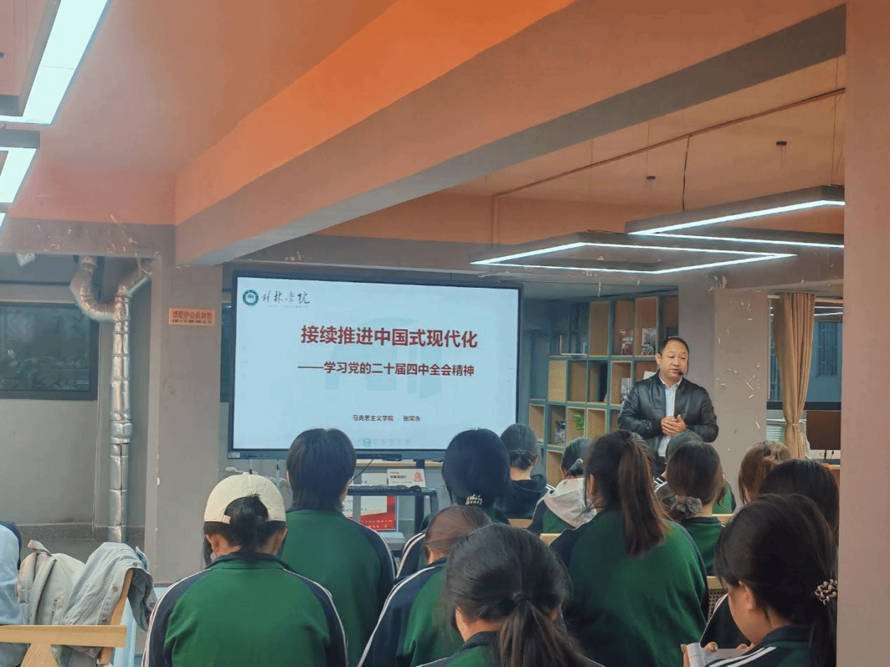 为深入学习贯彻党的二十届四中全会精神,引导青年学子深刻把握中国式现代化的核心要义与实践路径,11月13日晚,马克思主义学院院长走进学生社区党团活动中心,为外国语学院第七期青马班全体成员带来题为“接续推进中国式现代化”的专题讲座。整场讲座兼具理论深度与实践温度,为青年学子奉上了一场思想盛宴。