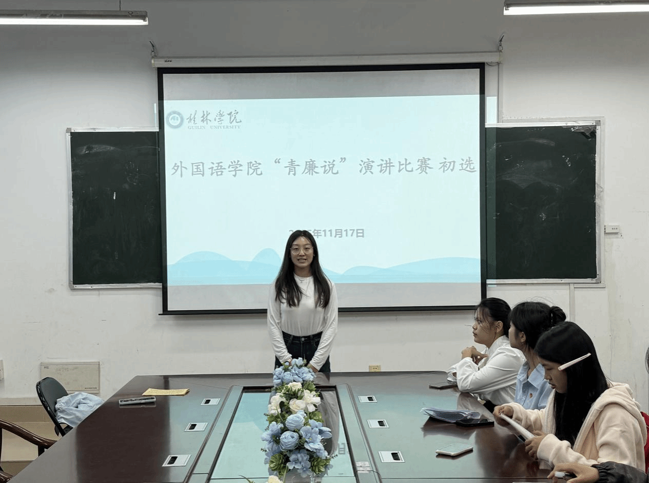 为深入贯彻《新时代廉洁文化建设三年行动计划(2025—2027年)》部署要求,扎实推进校园廉洁文化建设,引导青年学生厚植廉洁自律意识,11月17日,外国语学院“青廉说”学生演讲比赛在学院2108会议室圆满落幕。