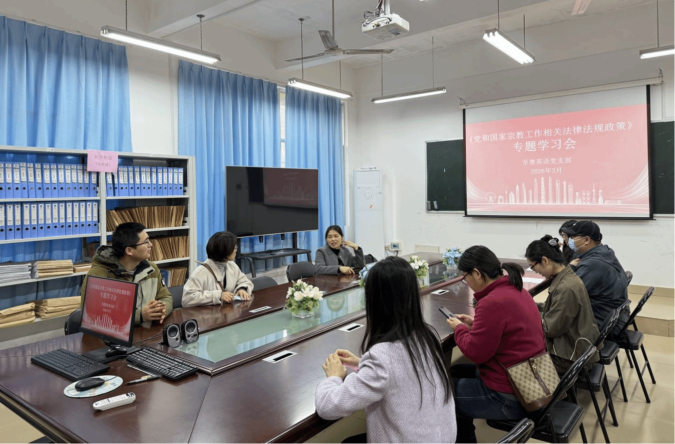 为深入学习贯彻习近平总书记关于宗教工作的重要论述,全面落实党的宗教工作基本方针,3月6日,至善英语党支部组织开展党和国家宗教工作法律法规政策专题学习活动。