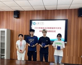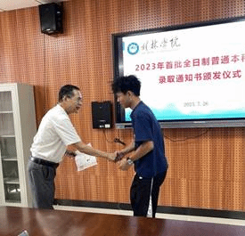 杨树喆在录取通知书上亲笔签名并为2023级新生代表颁发