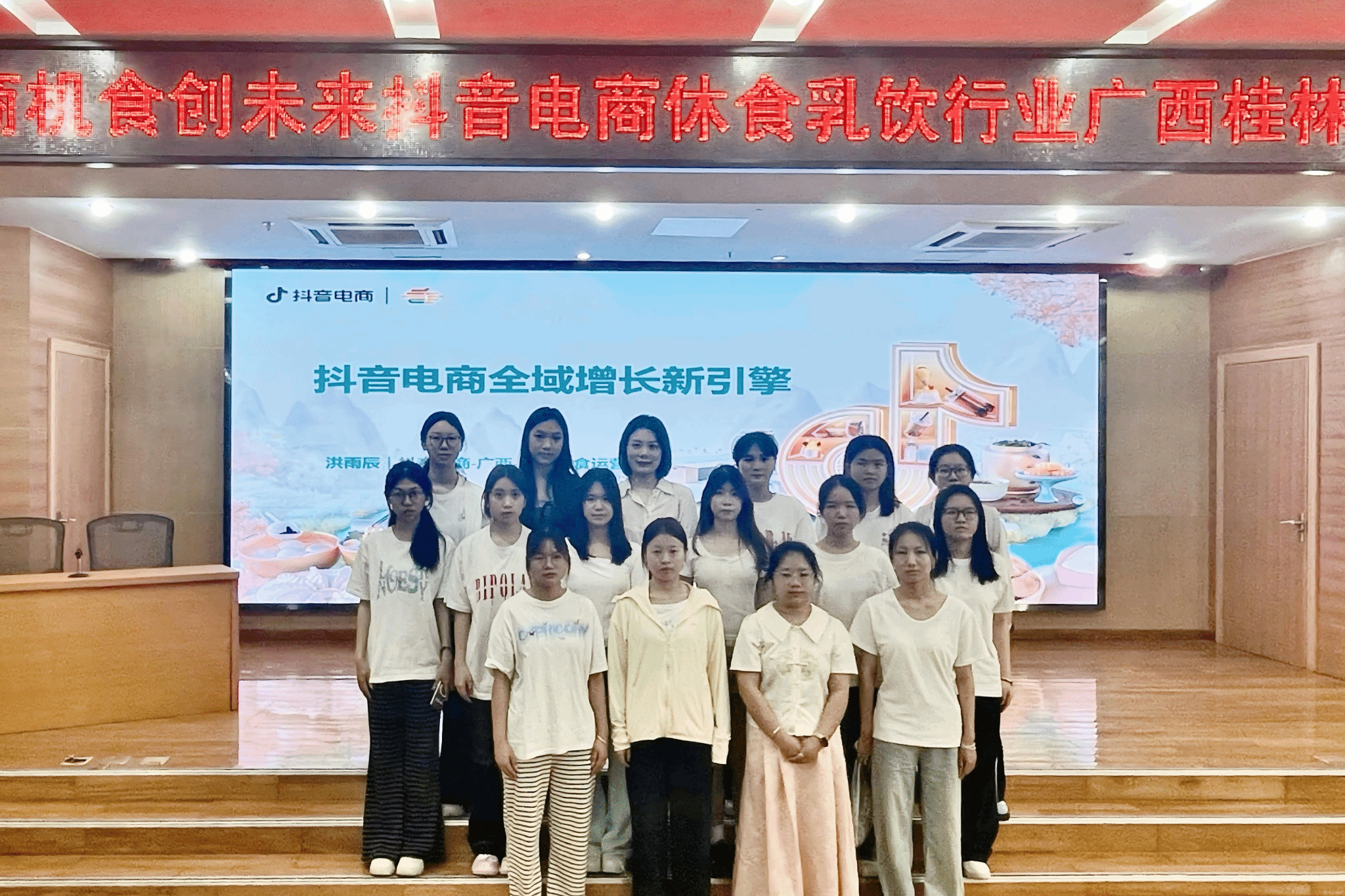 为深化产教融合,助力电子商务专业学生把握行业前沿动态,4月10日,工商管理学院电子商务专业师生参与抖音电商桂林专场培训。本次活动由广西壮族自治区商务厅、桂林市商务局指导,抖音电商鲜食生活休食乳饮行业主办,七星区商务局、广西直播电商联合会、桂林市电商协会协办,聚焦抖音电商全域增长策略、速食粉品类趋势及爆款解读、新商入驻激励政策三大核心内容,为学生们搭建起理论与实践对接的桥梁。
