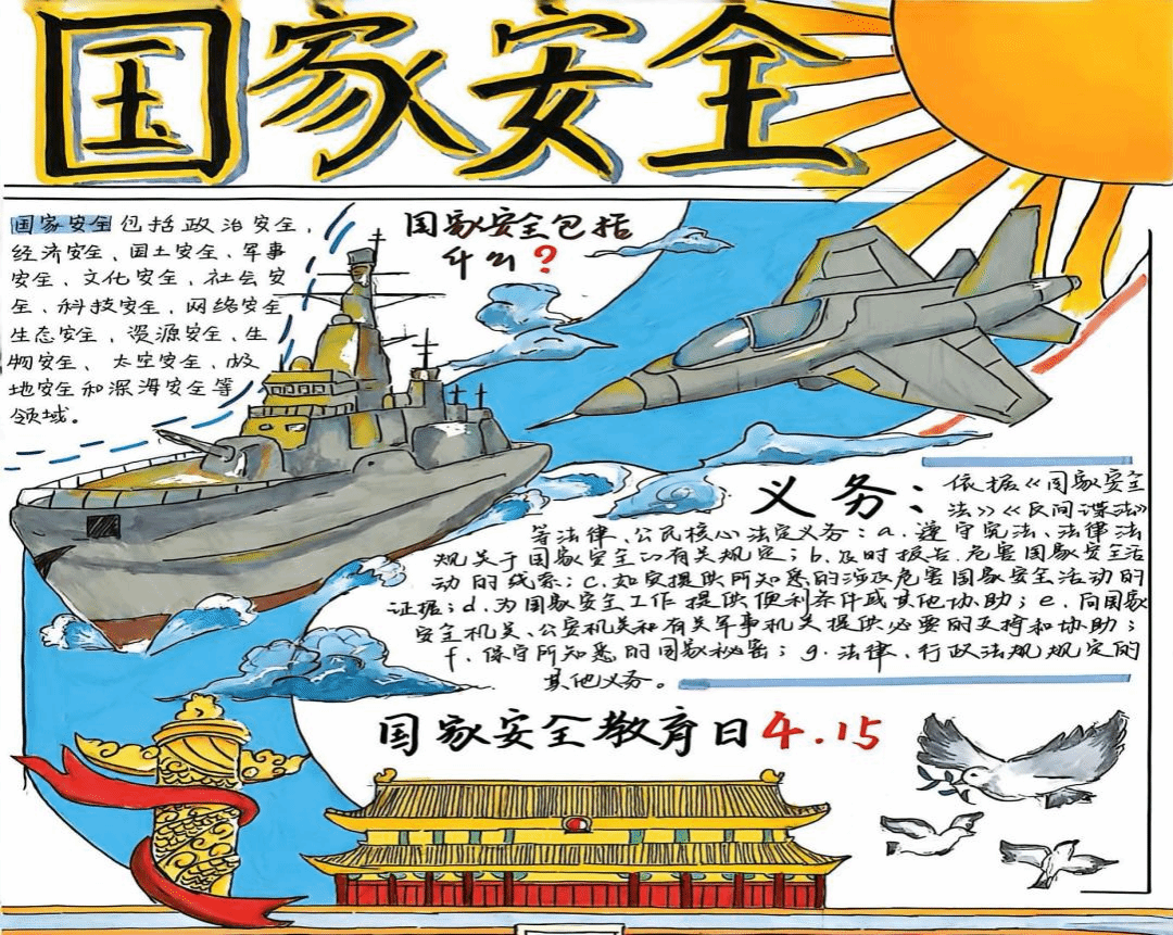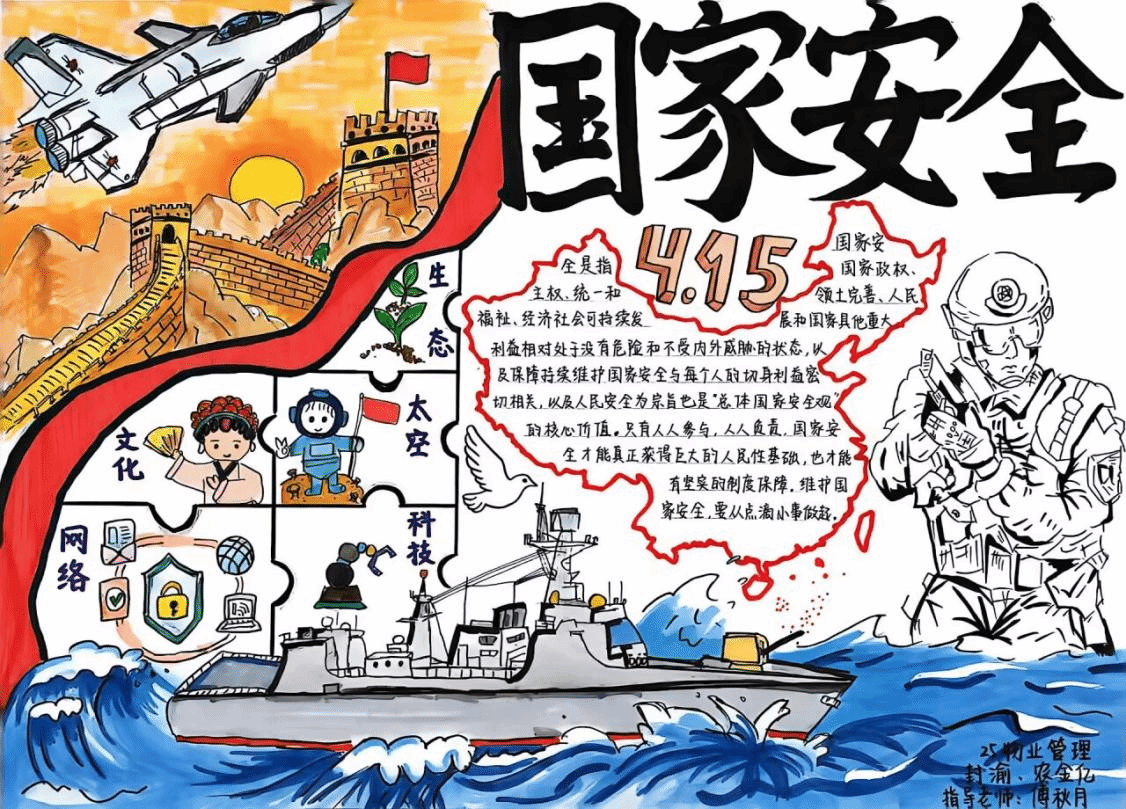 4月7—15日学院积极联动与至善学院合作举办全民国家安全教育日主题手抄报比赛。其中,我院共推出参赛作品12份,其中2份作品荣获一等奖,1份作品荣获二等奖,6份作品荣获三等奖,同学们以画笔为媒,将国家安全知识、法治理念、青年担当等元素融入设计之中,有的展现总体国家安全观的丰富内涵,有的聚焦网络安全、经济安全等重点领域,有的抒发青年学子守护国家安全的坚定决心。