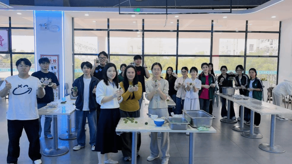 活动现场,师生们开展青团、五色糯米饭团手工制作体验。工作人员现场示范制作技巧,耐心指导大家动手操作,同学们分组协作、相互交流,揉面、包馅、塑形、搭配食材,在亲手创作中沉浸式感受“广西三月三”的民族风情与文化魅力。整个过程欢声笑语不断,大家在体验传统手工艺的同时,深入了解“广西三月三”节日内涵,传承民俗文化基因。