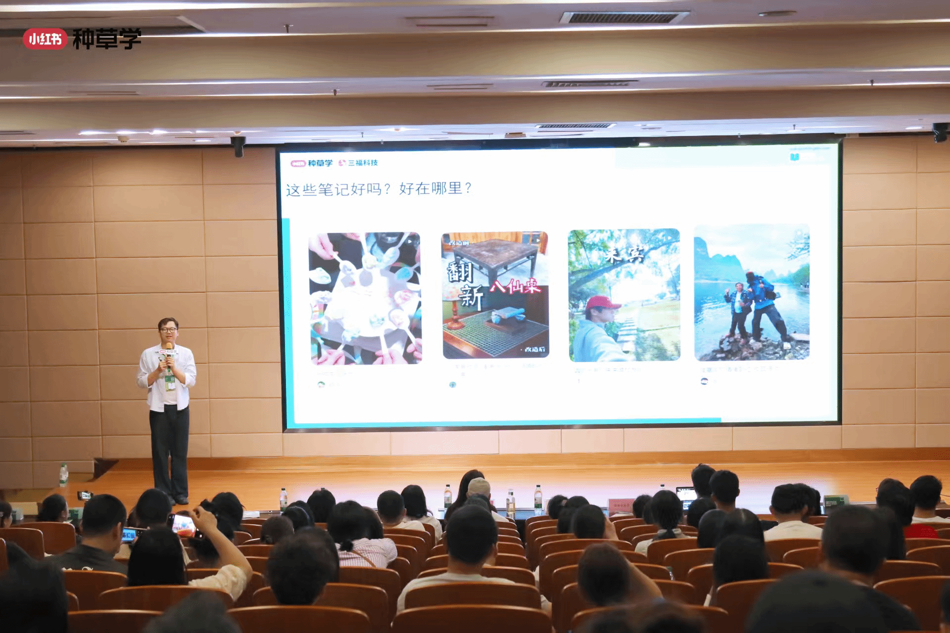本次培训由广西壮族自治区商务厅、桂林市商务局、桂林市文化广电和旅游局联合指导,小红书种草学主办,广西三福智能科技有限公司承办,旨在助力电商从业者与高校学子掌握内容电商核心技能,拓宽经营与就业思路。培训以 “从种草到转化的全链路经营策略” 为主题,采用线下授课、现场答疑、资源对接相结合的形式,由小红书官方讲师围绕用户洞察、内容策略、精准获客、流量转化等核心内容展开系统教学,全面讲解从内容创作到商业变现的实操方法。