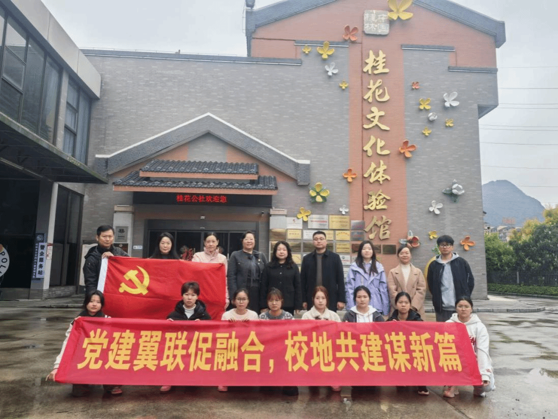 为深入推动党建引领下的校地融合发展,充分发挥高校党建与地方产业党建的协同优势,3月21日,工商管理学院党总支联合桂林市电商协会党支部、金顺昌·桂花公社党支部、中国电信广西桂林分公司客运中心党支部,组织党员代表走进桂林两新党建红色学院现场教学点桂花公社,开展“党建翼联促融合,校地共建谋新篇”主题共建活动。