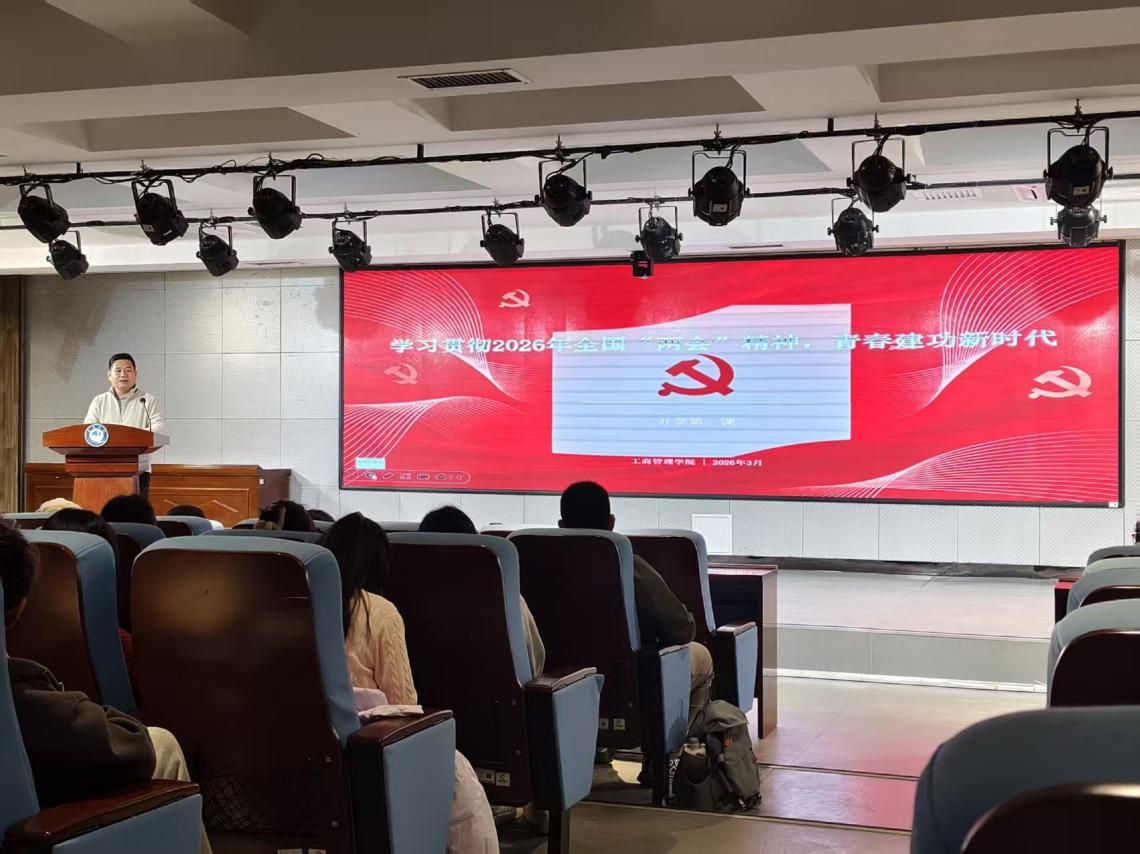为深入学习贯彻2026年全国两会精神,引导广大青年学生明确时代责任、筑牢成才根基,3月12日,工商管理学院党总支书记、行政副院长为全院学生讲授2026年春季学期“开学第一课”。