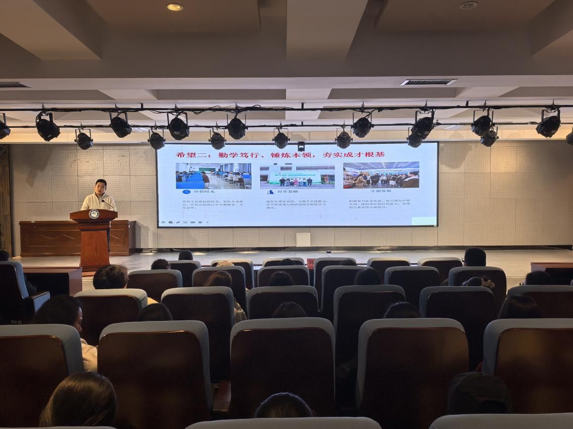 书记以“时代召唤:青年的历史机遇与责任”为开篇,从科技革命加速演进的时代背景出发,深刻阐释了国家对青年人才的迫切需求,勉励同学们肩负起时代赋予的历史使命,将个人发展融入国家发展大局。他强调,当前正是青年成长成才的黄金机遇期,同学们要认清历史方位,在关键领域、重要岗位上勇挑重担,以实际行动回应时代召唤。同时,书记向同学们提出两点希望:一是珍惜时光,打牢基础,要充分利用宝贵的校园时光,深耕专业知识,在理论学习中夯实根基,在实践锻炼中提升能力,做到勤学善思、知行合一;二是全面发展,成长为堪当重任的时代新人。要积极参与社会实践,主动拓展综合素质,努力成为理想信念坚定、专业本领过硬、具备家国情怀的复合型人才。
