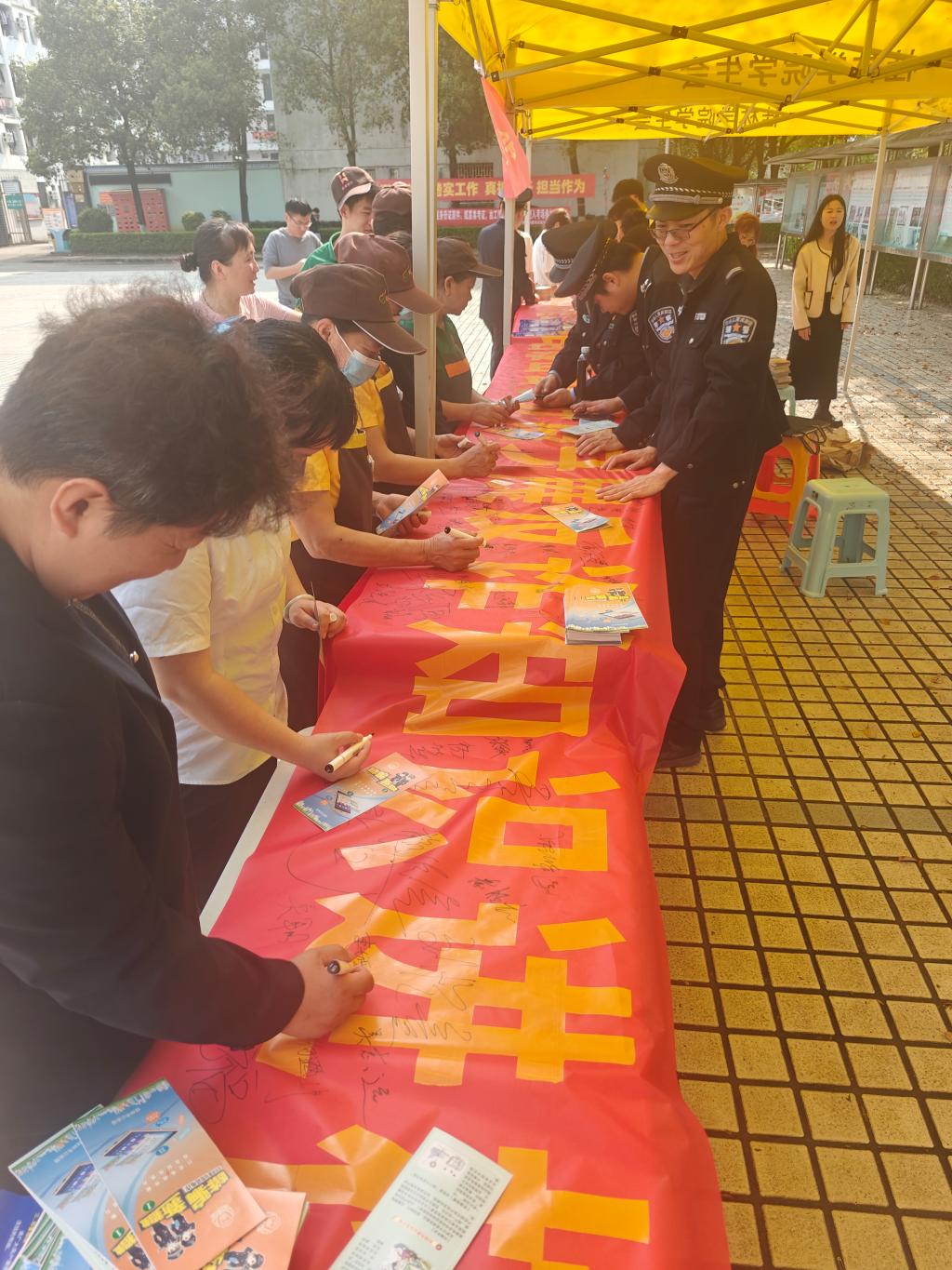 为推进防范网络电信诈骗工作,进一步提高广大师生反诈骗意识和能力,3月24日上午,我校与桂林市公安局雁山分局刑侦大队、雁山镇派出所在乐善广场联合开展“我为同学做实事丨防范诈骗,共筑平安校园”反诈宣传进校园活动。后勤保卫处组织水电班、驻校安保人员及食堂、商铺从业人员50余人参加此次活动。