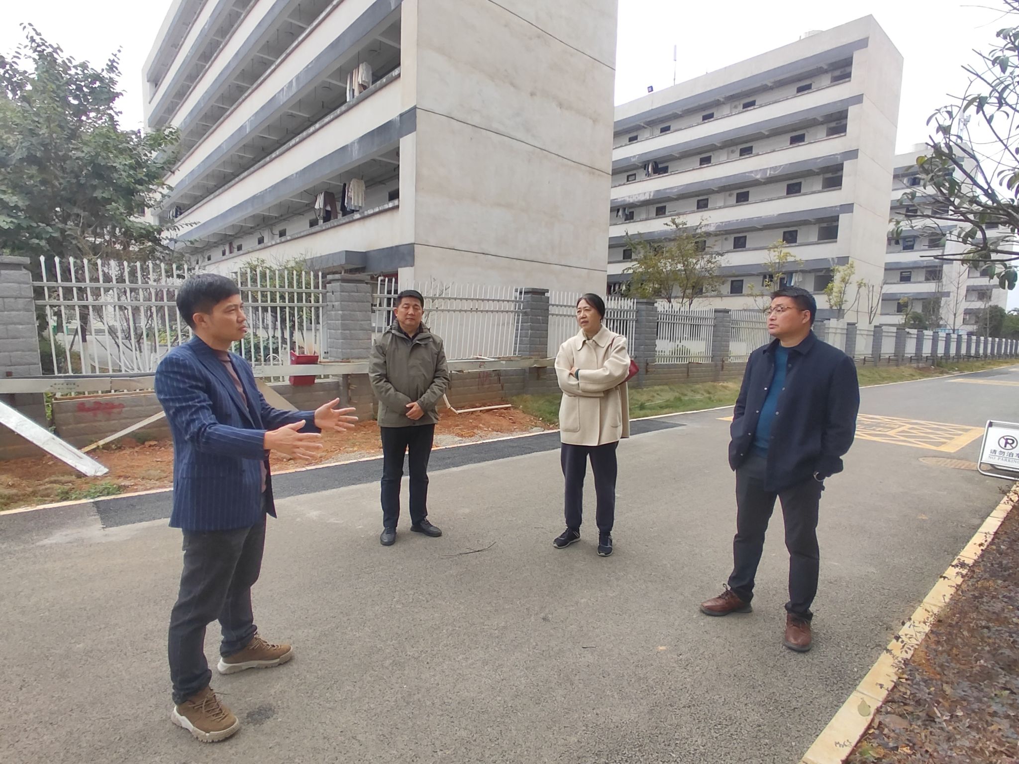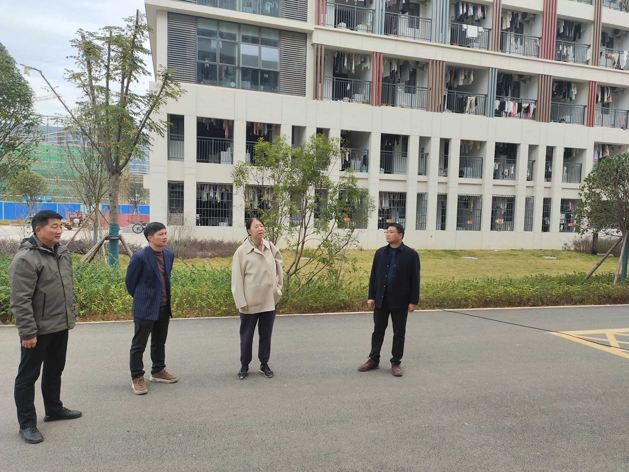唐文红书记一行先后来到学校二期4栋、5栋学生公寓和东一至东四“一站式”学生社区组团建设工地,一边了解学生社区组团建设规划、工程进展,一边询问“一站式”服务工作流程、功能要素设置,并针对学生社区建设文化氛围营造、国防教育元素的嵌入、跨部门协同联动等问题提出具体意见建议。