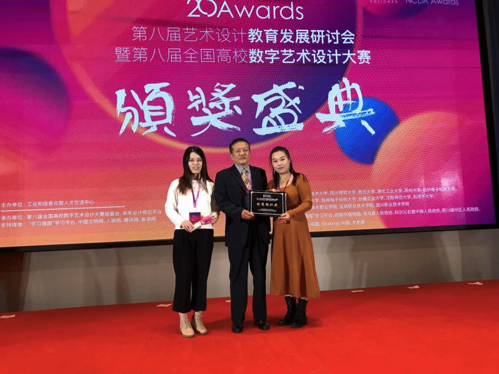 11月12日,设计学院教师严乐、秦颖应邀前往杭州出席本届比赛颁奖典礼,数字艺术设计大赛组委会高度肯定我校师生的参赛作品。