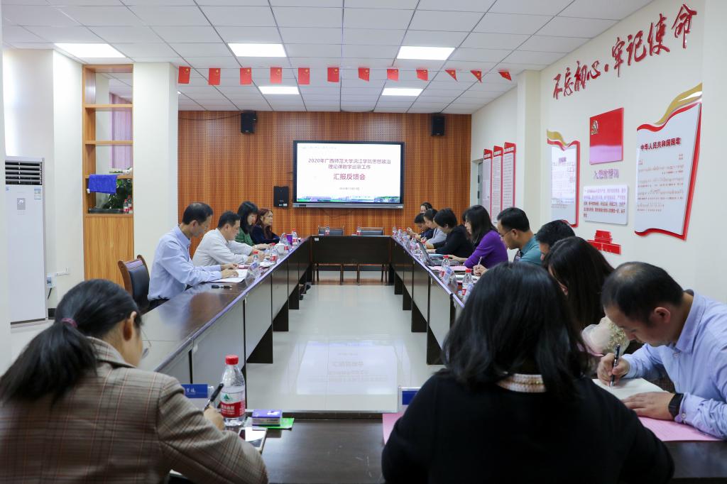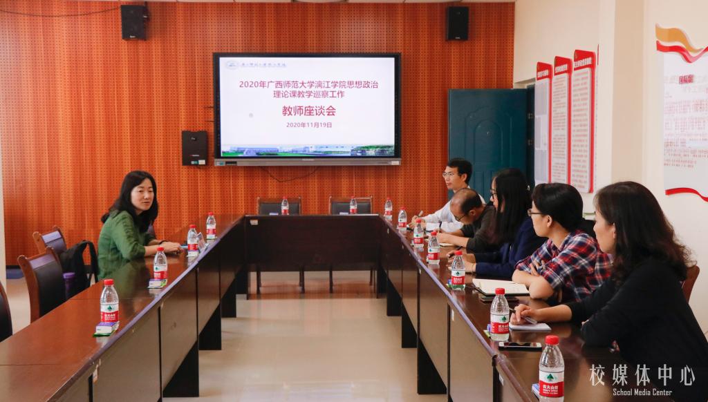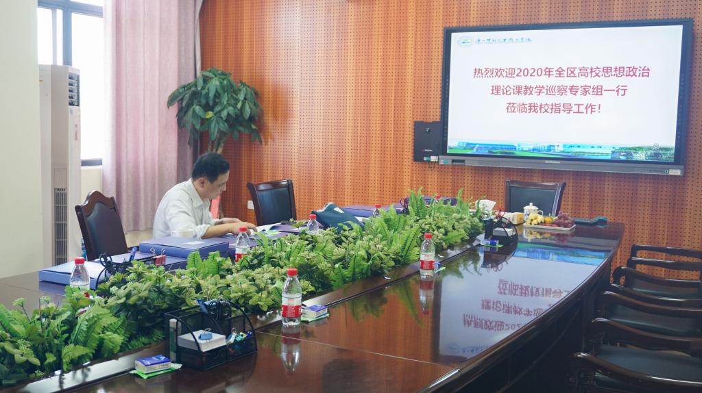 11月19日下午,自治区高校思想政治理论课教学巡察组在组长桂林理工大学副厅级调研员张劲松教授带领下,同组员桂林理工大学统战部部长邱杰教授、南宁师范大学马克思主义学院李宝文教授、桂林电子科技大学秦永芳教授一行到我校开展巡察指导工作。校领导唐文红、杨树喆、邓志平、杨庆庆以及我校思想政治理论课建设领导小组成员陪同巡察并出席相关会议。