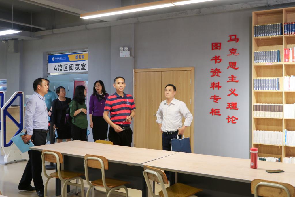 图:巡查组参观图书馆A馆马克思主义理论图书资料专柜