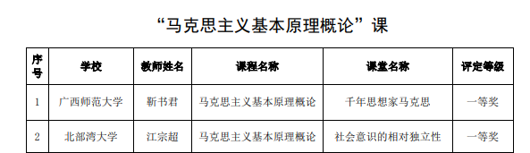 近日,自治区党委教育工委公布了《自治区党委教育工委 自治区教育厅关于公布2020年全区高校学习习近平新时代中国特色社会主义思想示范课堂获奖结果通知》(桂教工委宣〔2020〕23号),我校推送的作品荣获一个一等奖、两个三等奖的好成绩。
