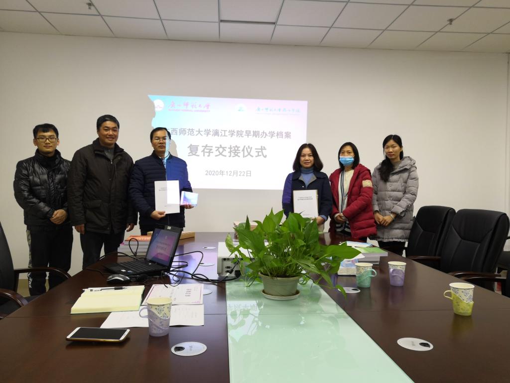 图:我校与广西师范大学档案馆举行早期办学档案复存交接仪式