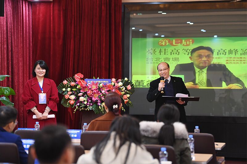 12月18日,以“ 构建时代高质量高等教育体系 ”为主题的第七届桂台高等教育论坛在广西民族大学相思湖学院开幕,论坛采用线上视频与线下出席相结合的方式举行,台湾地区教育界嘉宾和专家学者以线上视频方式参会,我校合作发展处负责人参加论坛并发表主题演讲。