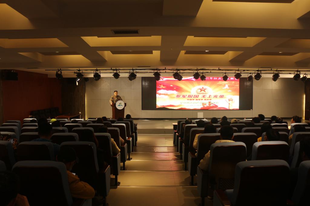 12月29日,为进一步增强师生国防观念,强化依法服兵役意识,积极鼓励学生参军报国,建功立业。我校在至善讲堂召开2020-2021学年大学生征兵宣传动员会议。特邀桂林市雁山区人民武装部政委苏瑜为主讲嘉宾。各二级学院分管学生工作副书记、学生事务部相关人员、全体专兼职辅导员、学生代表参加会议。