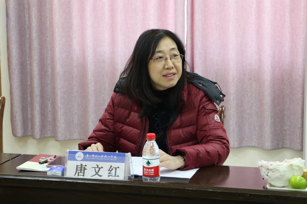 图:校党委书记唐文红主持座谈会并作发言