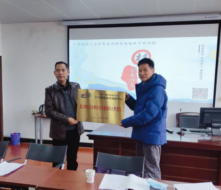 沙龙活动开始,黄伟林教授借此契机将“漓江特色文化研究与传播协同创新团队”牌匾授予杨树喆教授。随后,教学科研处负责人简要介绍了协同创新团队建设周期与结项要求,漓江文化研究院协同创新团队依次对各自团队建设取得的阶段性成果进行了汇报与展示,桂学研究院专家对我校协同创新团队建设项目取得的成果进行了精彩点评,也提出了很多进一步完善研究工作的宝贵建议。会上,大家围绕科研合作以及各自感兴趣的话题进行了广泛的、开放式的交流讨论,互相碰撞出了思维上的火花,激发了各自学术领域上的灵感,开阔了眼界,现场气氛自由活跃。